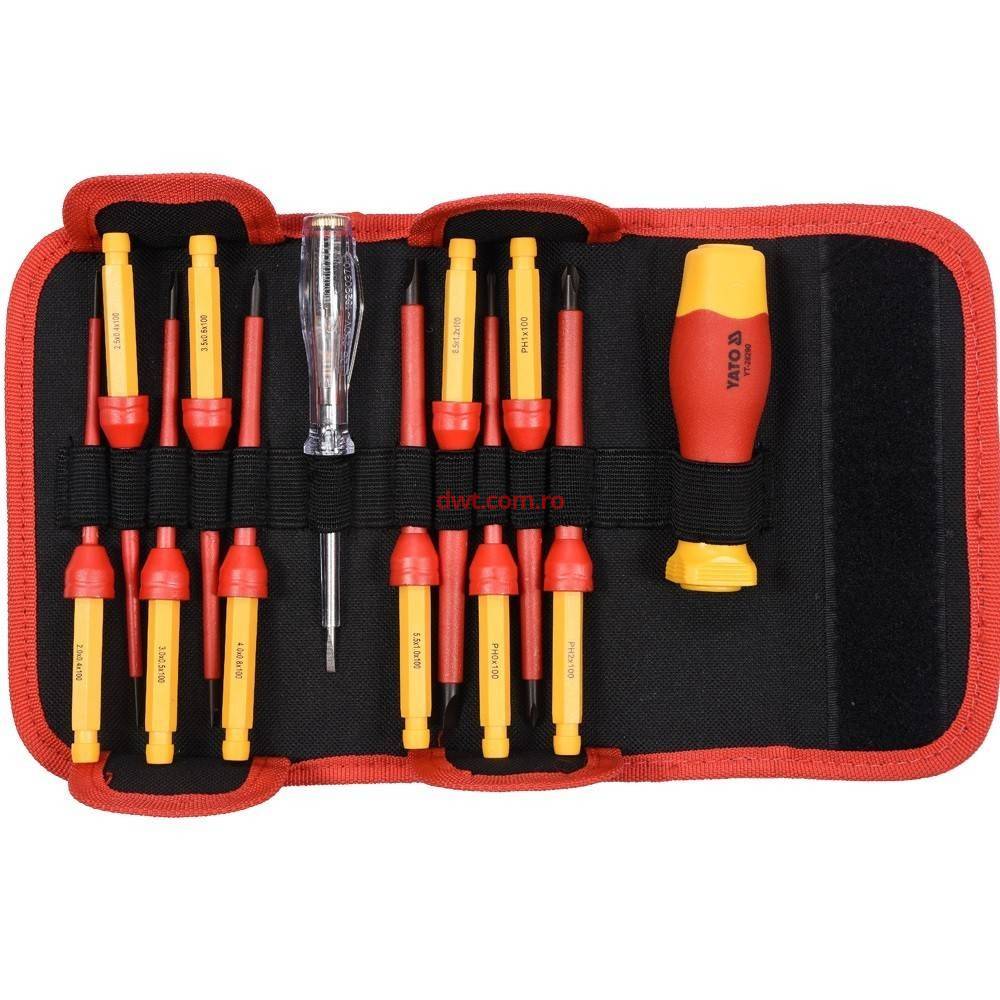 YATO YT-28290 Set 12 surubelnite VDE, Yato YT-28290, 1000 V, cu maner interschimbabil |