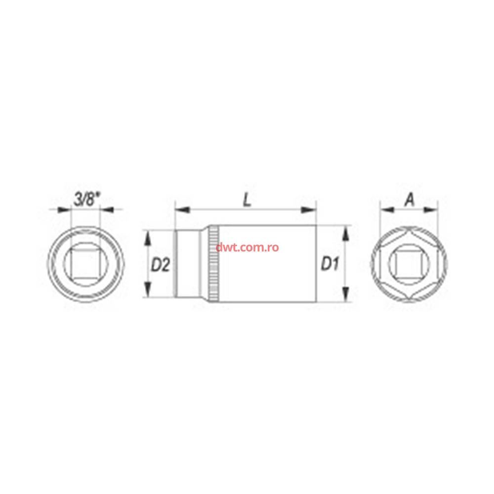 YATO YT-3826 Cheie tubulara hexagonala adanca 3/8", 12mm, CR-V, Yato YT-3826 |