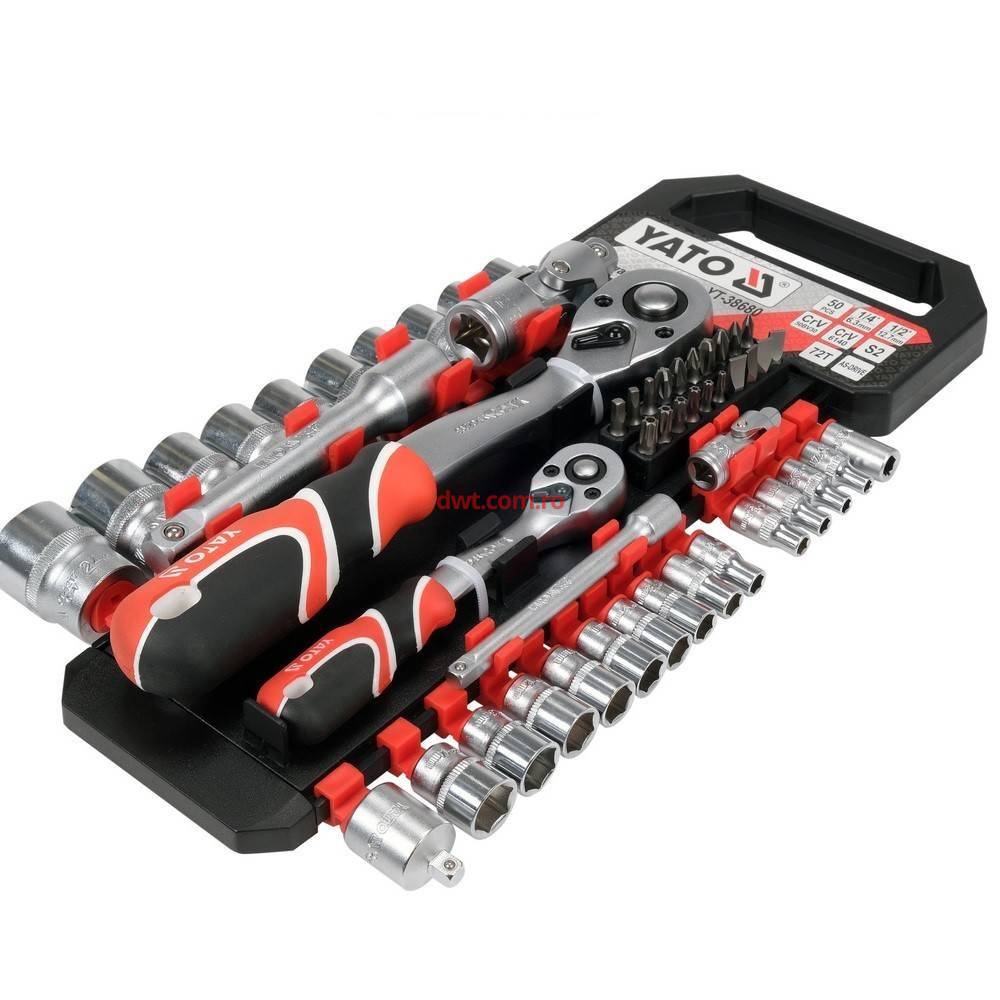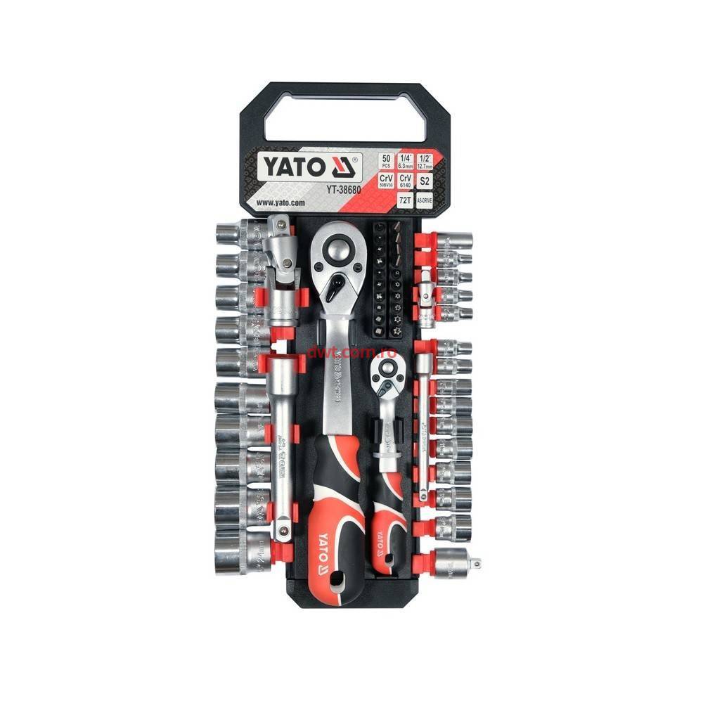 Comanda instant - YATO yt-38680 Set tubulare cu accesorii clichet 1/4', 1/2 ', 51 piese, Cr-V
