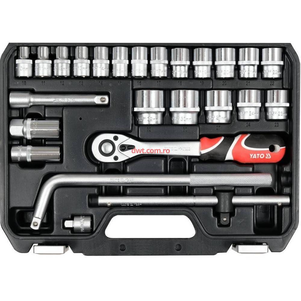 YATO YT-38741 Trusa 25 chei tubulare prindere 1/2, Yato Crom Vanadiu, antrenor cu clichet |