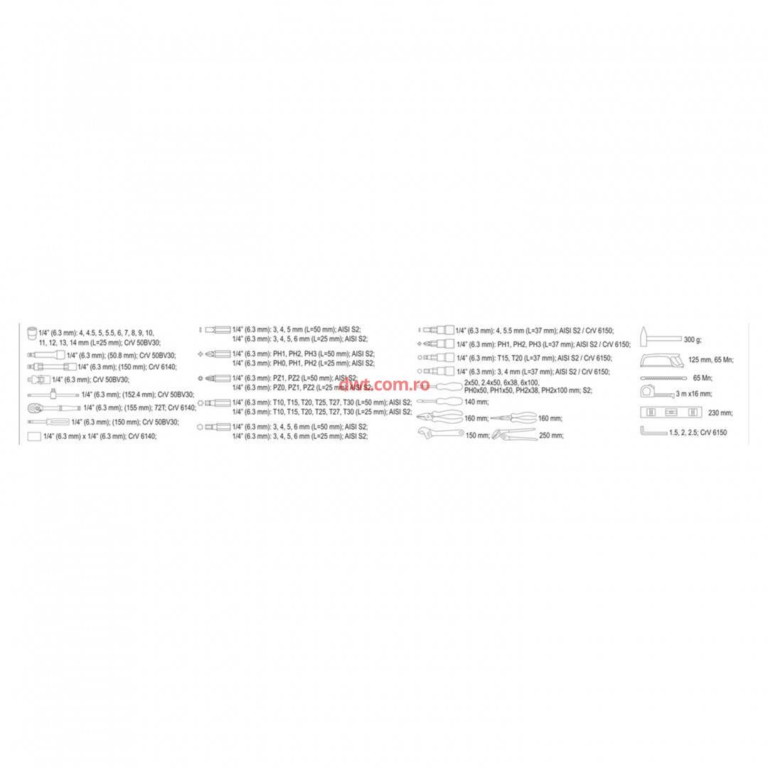 YATO YT-38928 Trusa de scule, 1/4", 88 piese, Yato YT-38928 |