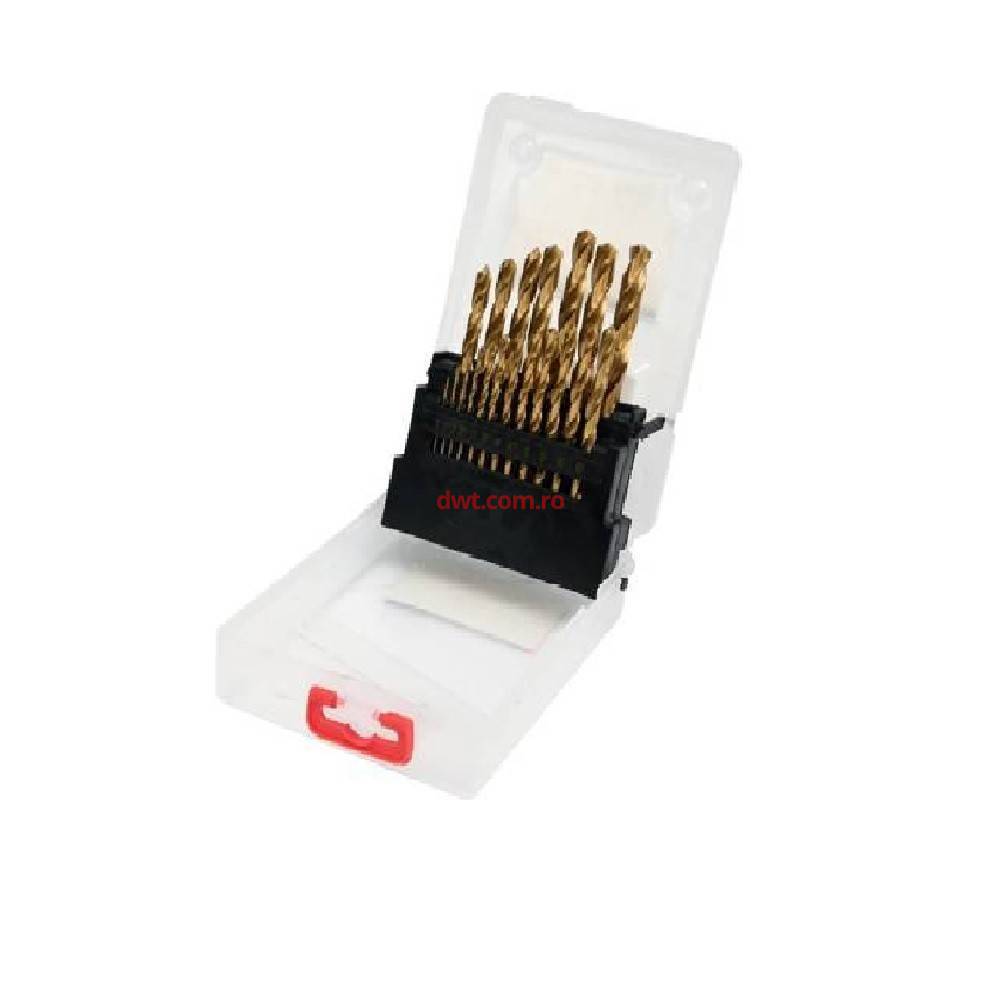 pentru uz profesional. Setul include 19 burghie cu diametru [mm]: 1; 1.5; 2;