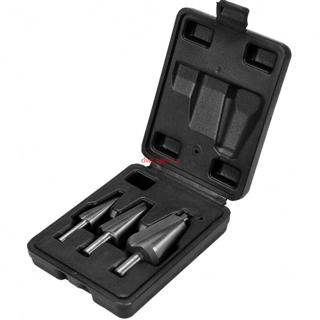 YATO YT-44730 set de burghie conice din oțel HSS durabil și de mare viteză care permite găurirea în oțeluri aliate dure, aluminiu, tablă și PVC