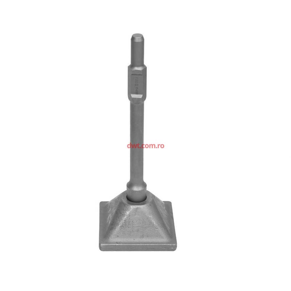 Proiectat pentru ciocanele cu prindere hexagonala Folosit pentru demolare si lucrari de constructii, cum ar fi fundatii care se sfarama, dale de beton, trotuare zdrobitoare, asfalt Fabricat din otel calit durabil Dimensiune talpa: 150 x 150 mm Lungime totala a tijei: 400 mm Prindere: hexagon 30 mm |