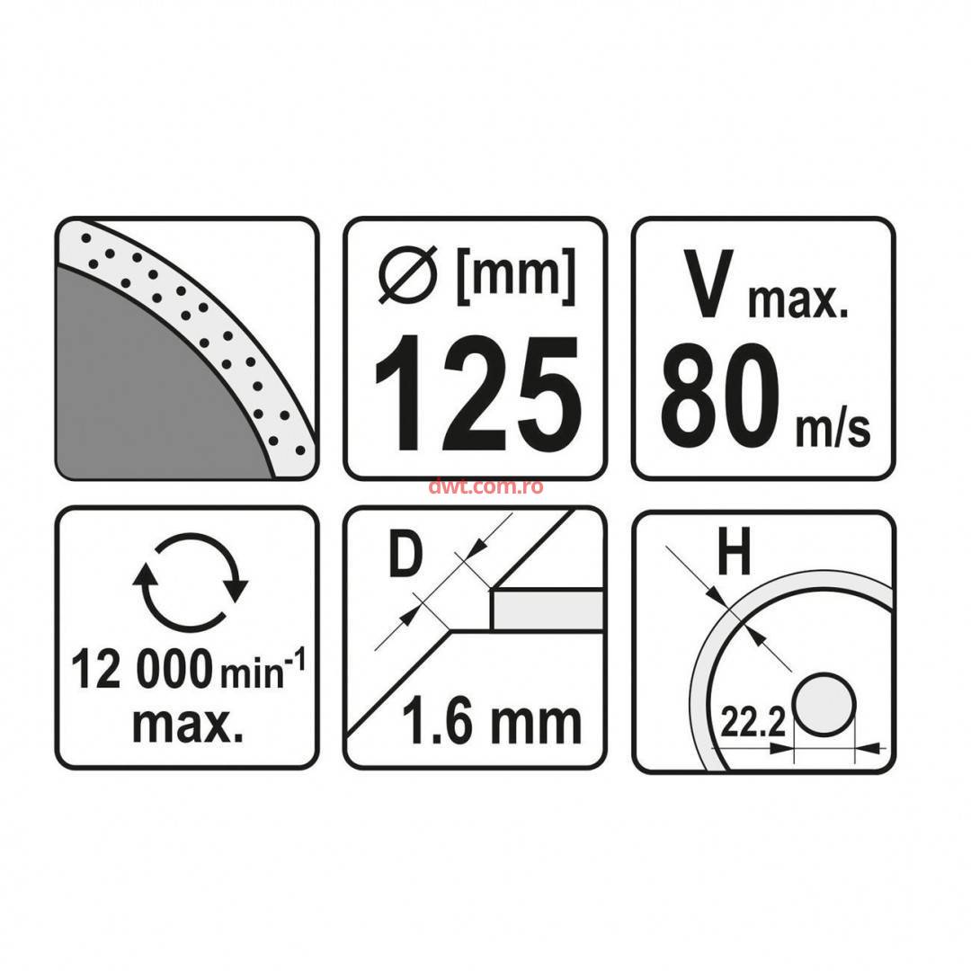 YATO YT-59952 Disc diamantat taiere gresie si faianta, Yato YT-59952, diametru 125 mm |