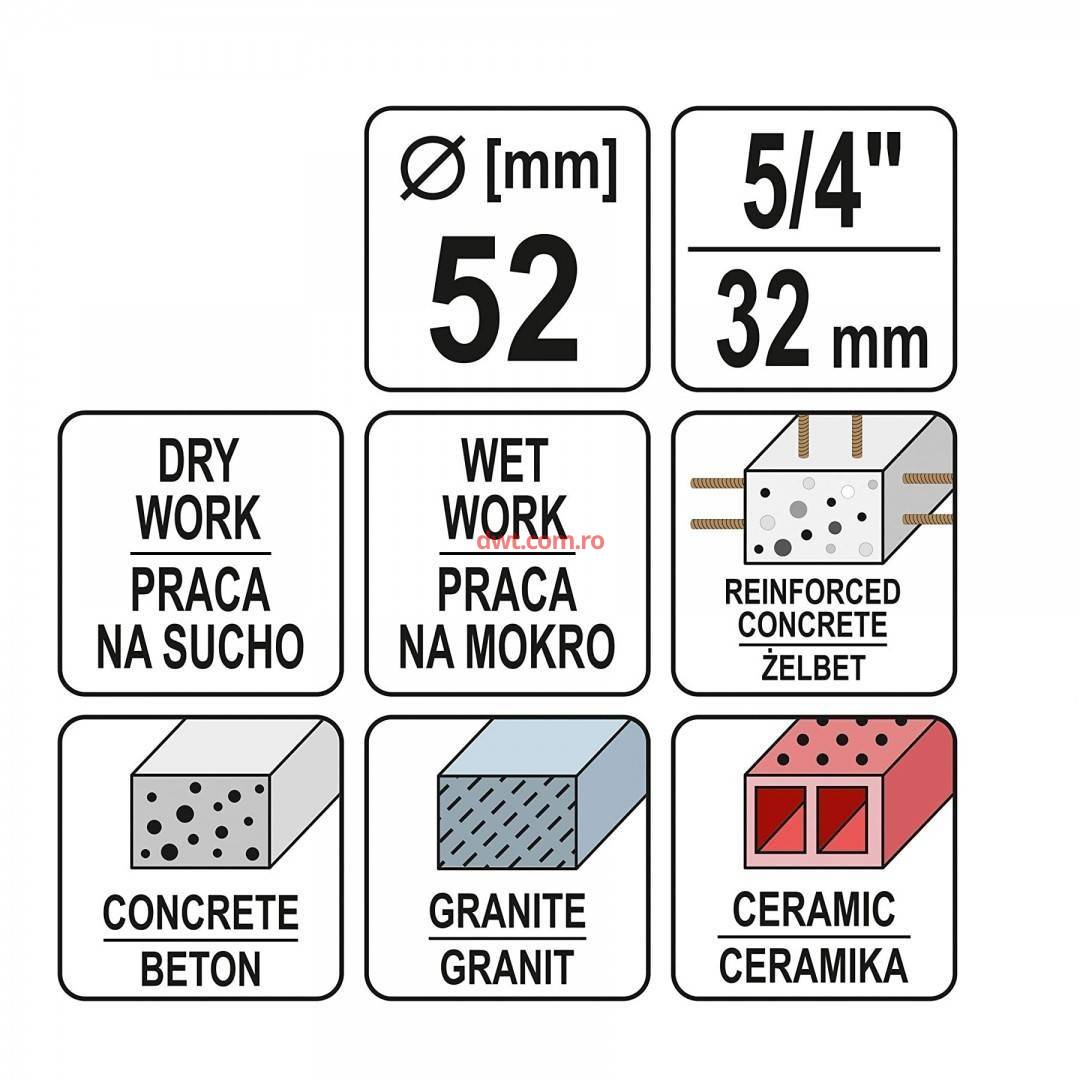 Comanda instant - YATO YT-60373 Carota diamantata pentru beton Yato YT-60373, diametru 52 mm, lungime 400 mm
