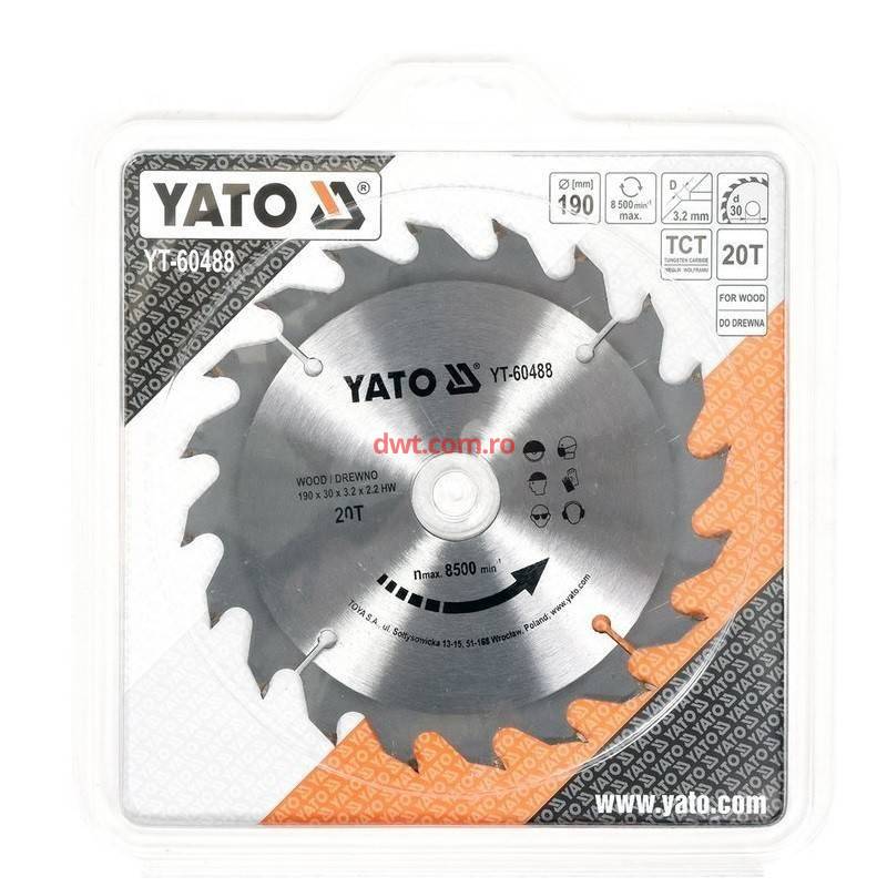 Comanda instant - YATO YT-60488 Disc pentru lemn Yato YT-60488, 190x30x3 mm, 20 dinti, pastile vidia