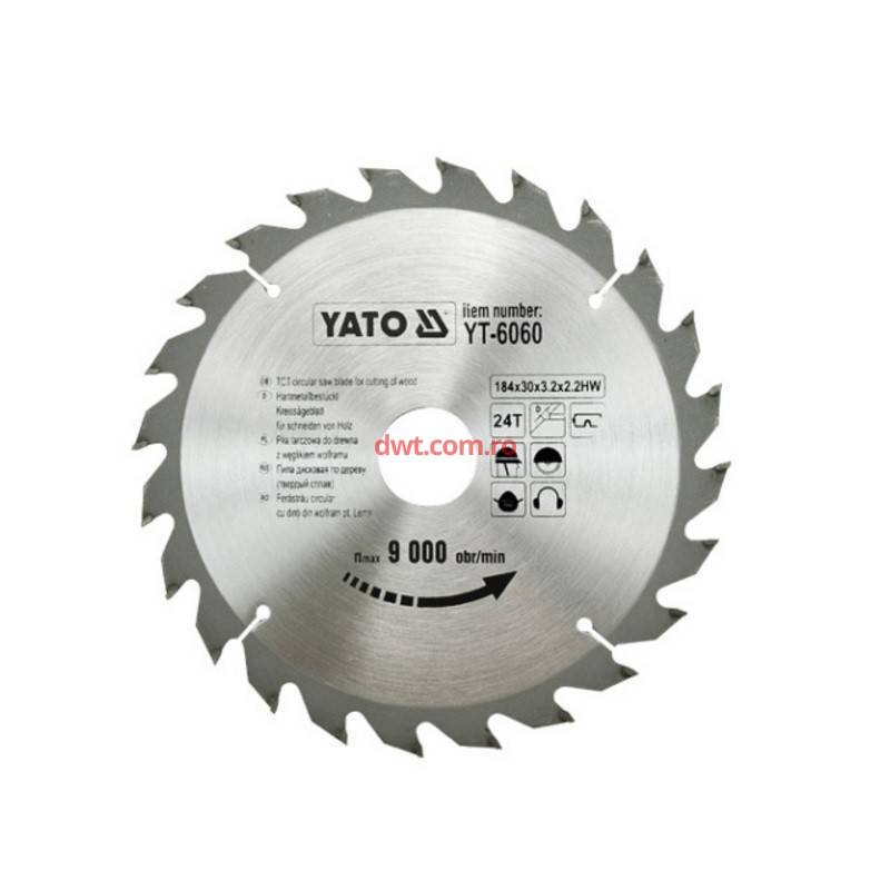 YATO YT-6060 Disc vidia pentru lemn 184 mm, Yato YT-6060, 24 dinti |