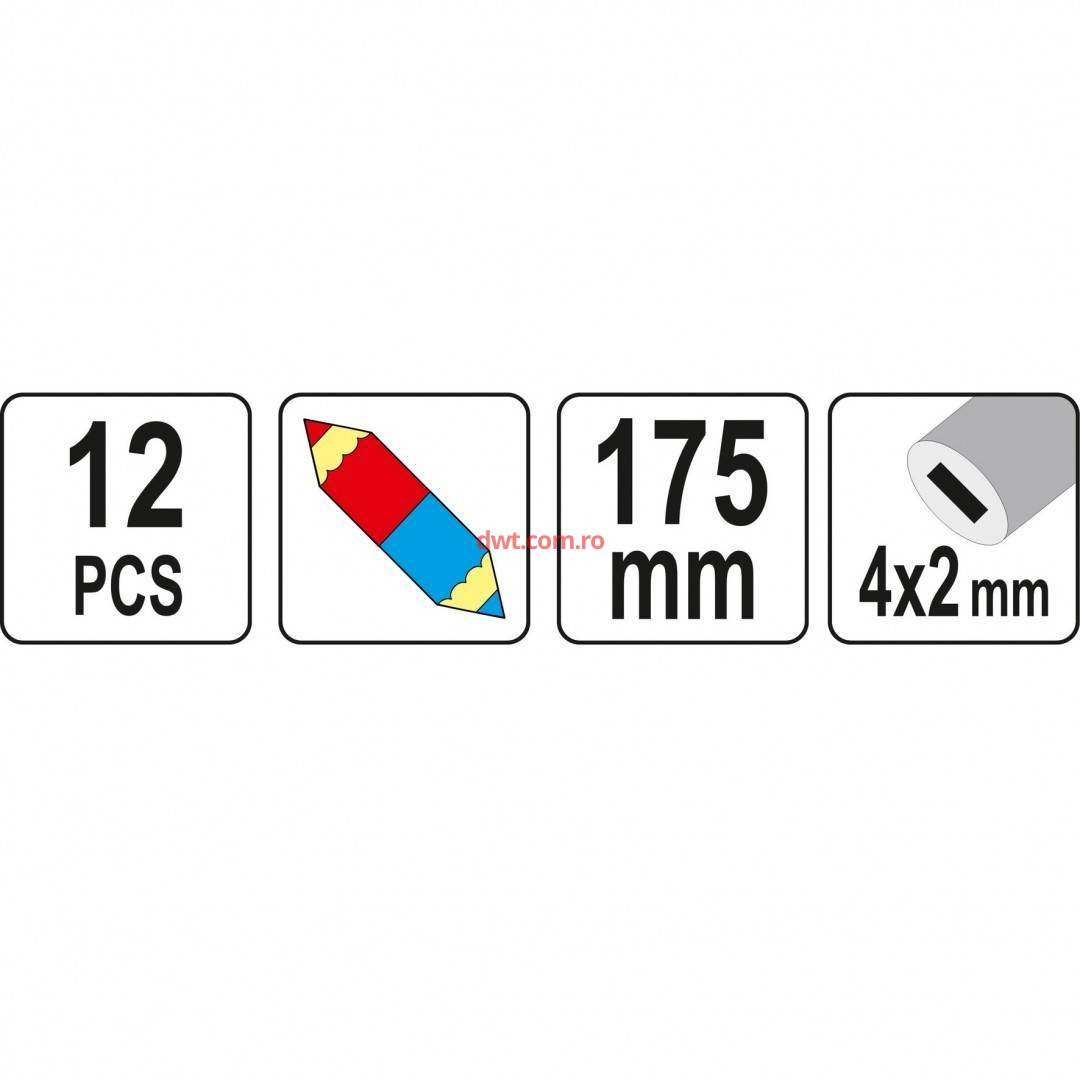 Comanda instant - YATO YT-69940 Set 12 creioane pentru tamplarie Yato YT-69940, cap dublu rosu si albastru