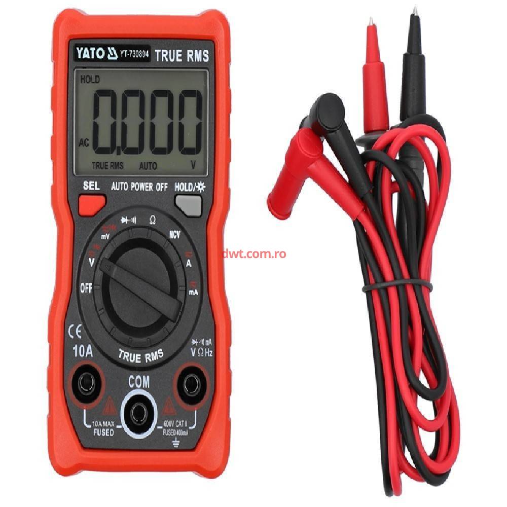 YATO yt-730894 Multimetru digital RMS, afisaj LCD 4000, 600V, 10A |