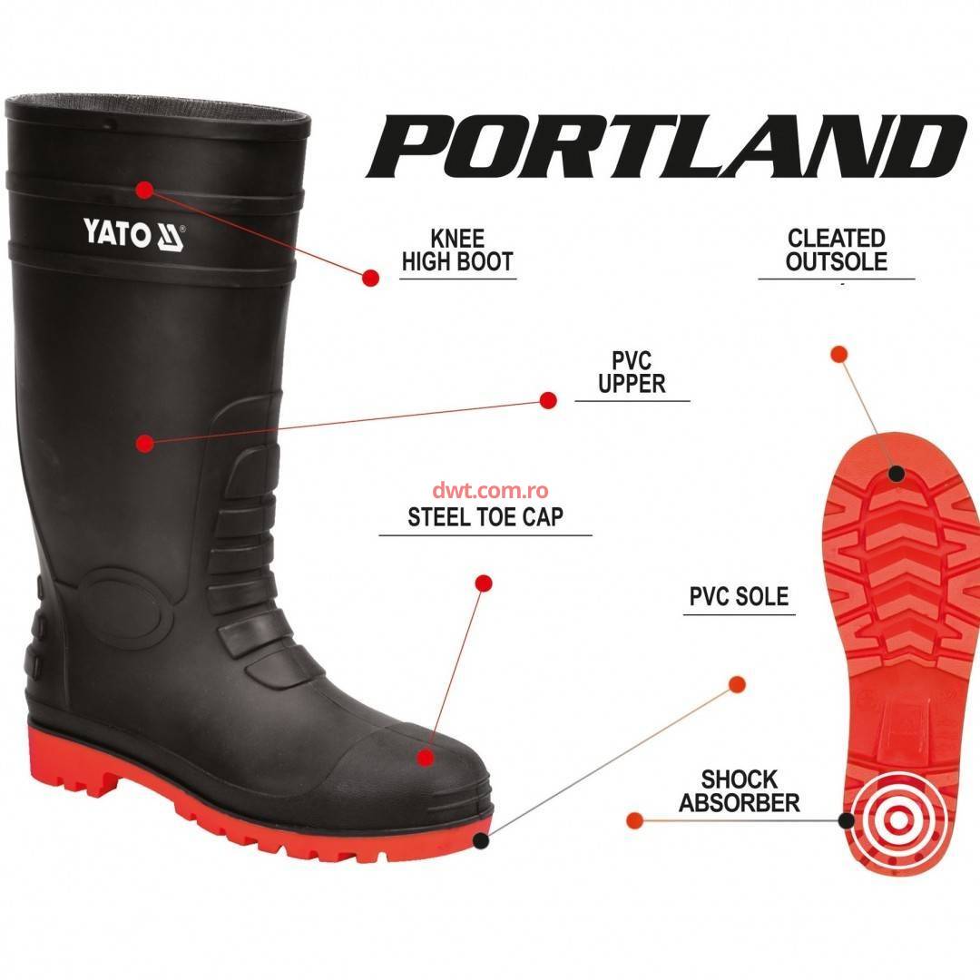 Cizme din cauciuc cu bombeu metalic Yato YT-80886, marimea 44,