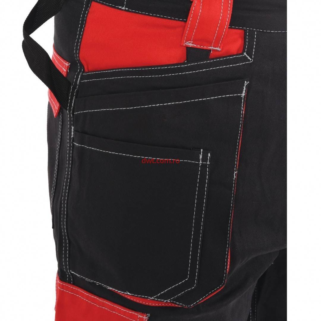 material rezistent la rupere pe bază de bumbac 100%. Negru cu adaosuri roșii.