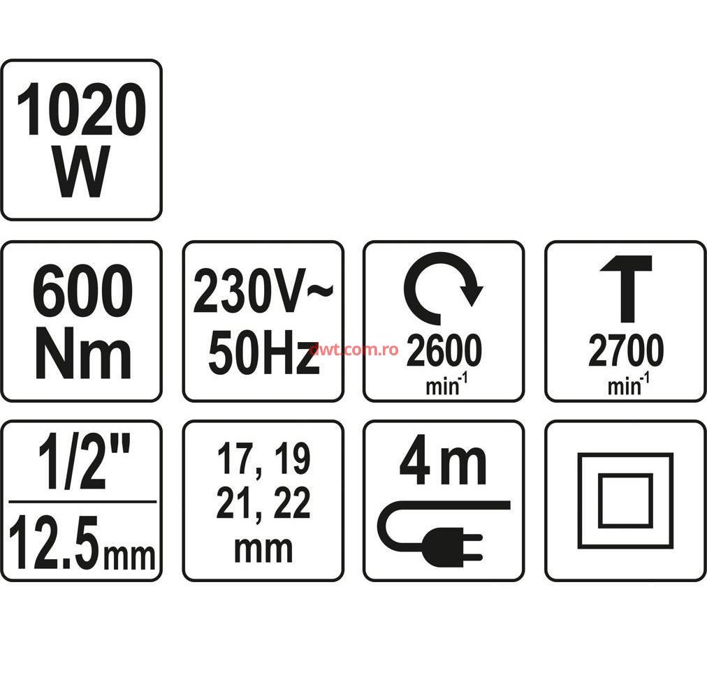 Pistol electric de impact Yato YT-82021, 600 Nm, 1/2â€, 1020W