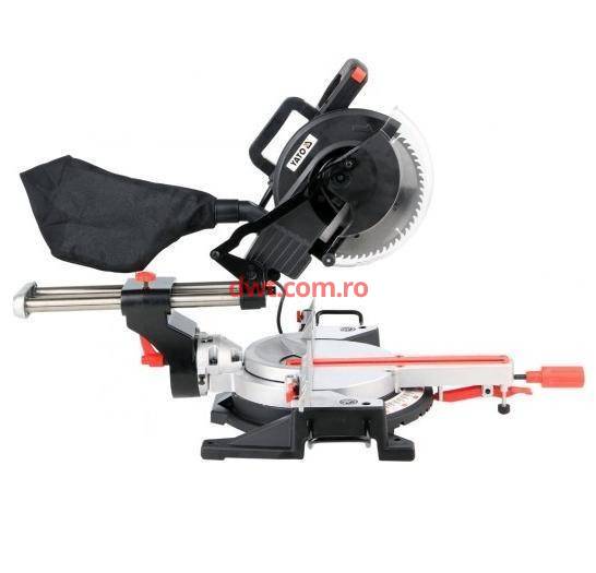 YATO Made in Poland Caracteristici tehnice: Cu o putere de 1800W, Marca YATO, este indispensabil in amenajarile interioare si toate lucrarile de constructii. Se foloseste la taierea lemnului, panourilor, laminate si materiale plastice. Dispozitivul are un motor puternic cu o durabilitate mare, cu o precizie sporita si un scut de tăiere de aluminiu Este echipat cu manere de transport si de imobilizare a materialului care se taie. Designul special al bratului extensibil asigura precizie si confort clar, mecanismul de blocare este cu clichet, unghiul de inclinare a asigura o debitare precisa din orice pozitie. Cablul de alimentare este din cauciug flexibil Este dotat cu sac pentru colectarea resturilor Parametru Unitate de măsură Valoare Număr de catalog YT-82171 Tensiune nominală [V] ~230 Frecvenţă nominală [Hz] 50 Putere nominală [W] 1800 Turaţie nominală [min-1] 4800 Înălţimea max. x lungimea max. de tăiere unghi de rotire orizontal 0O / unghi de înclinare 0O [mm] 95 x 310 unghi de rotire orizontal 45O / unghi de înclinare 0O [mm] 95 x 210 unghi de rotire orizontal 0O / unghi de înclinare 45O [mm] 50 x 310 unghi de rotire orizontal 45O / unghi de înclinare 45O [mm] 50 x 210 Disc de ferăstrău: diam. ext. x diam montură x grosime max. [mm] 255 x 30 x 3 Dimensiuni minime material prelucrat: înăl. x lun. x gros. [mm] 30 x 200 x 30 Masa [kg] 18 Nivel de zgomot - presiune acustică LpA ± K [dB(A)] 86,0 ± 3 - putere LwA ± K [dB(A)] 99,0 ± 3 Nivel de vibraţii [m/s2] 1,297 ± 1,5 Clasa de izolaţie II Nivel de protecţie IP20