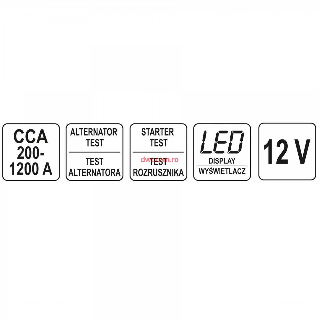 YATO YT-83113 Tester baterii auto 12V, Yato YT-83113, LCD, 200-1200A |